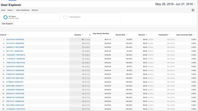 In March, Google Analytics added a new beta feature called User Explorer, a report designed to help marketers recognize emerging new segmentation trends from online behavior among individuals.