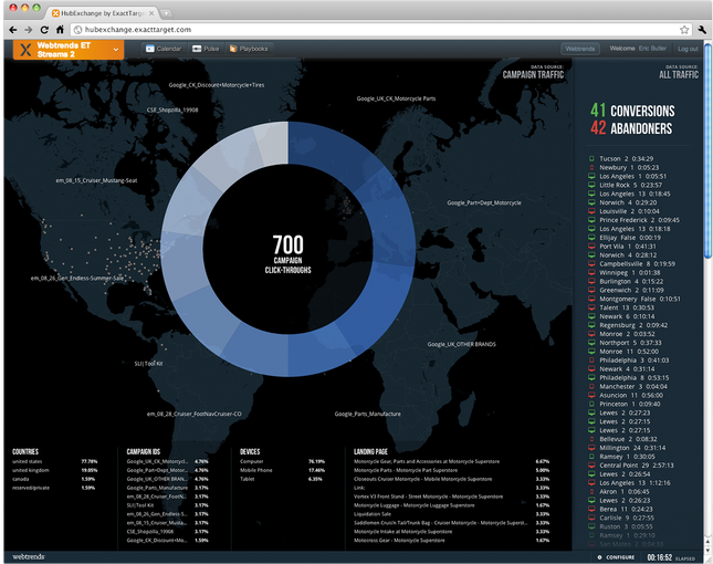Webtrends is expanding its real-time marketing data solutions with a partnership announced today with ExactTarget. The debut of Webtrends Campaign Streams technology with ExactTarget provides ExactTarget customers in-the-moment insight into the performance of their marketing campaigns. The technology is built specifically for the ExactTarget HubExchange Marketplace and is free.