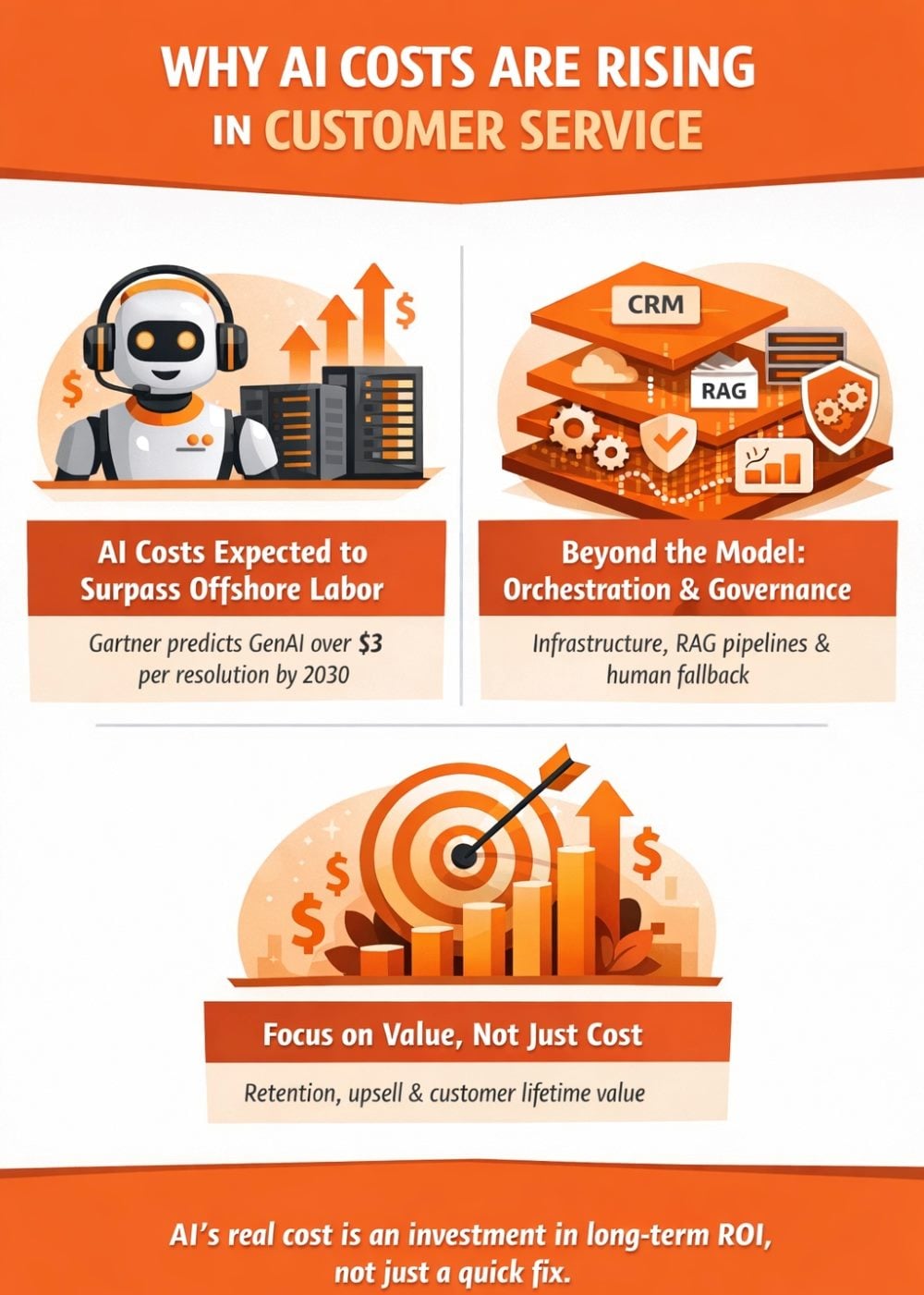 Taken together, these elements reveal a broader reality: generative AI in customer service is not a single technology expense. It is an operational infrastructure investment. As deployments mature and move beyond experimental pilots, the full cost structure becomes more visible.
