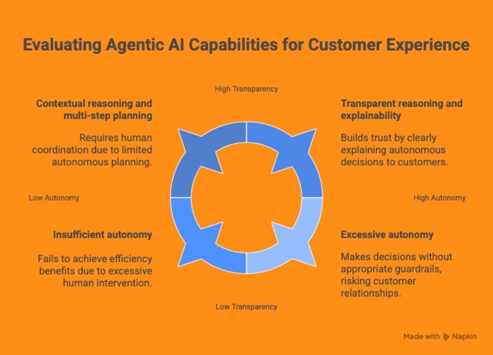 - Continuous learning and improvement ensure agents become more effective over time rather than remaining static. Agentic systems should analyze outcomes from their autonomous decisions, identify patterns in successful and unsuccessful interventions and iteratively refine their decision-making frameworks. CCOs should evaluate whether the system provides transparency into how it learns—what data it uses, what feedback loops inform improvement and whether learning occurs in alignment with customer experience objectives rather than narrow efficiency metrics.