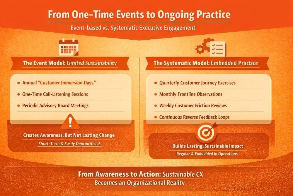 Sustainable impact requires embedding executive customer engagement into regular organizational rhythms: