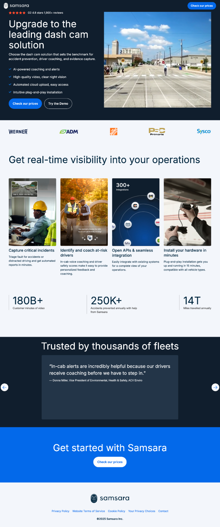 Samsara is a leader in connected operations technology, enabling safer roads, more efficient operations and greener outcomes across industries. Their website is pivotal in driving business growth, acting as a hub for educating prospects, capturing demand and accelerating the path from interest to lead to opportunity. To accomplish all this, Samsara needs tools that allow them to experiment, iterate and personalize.