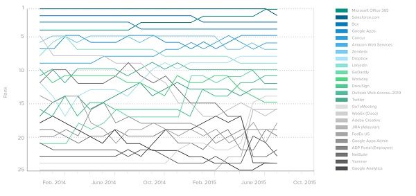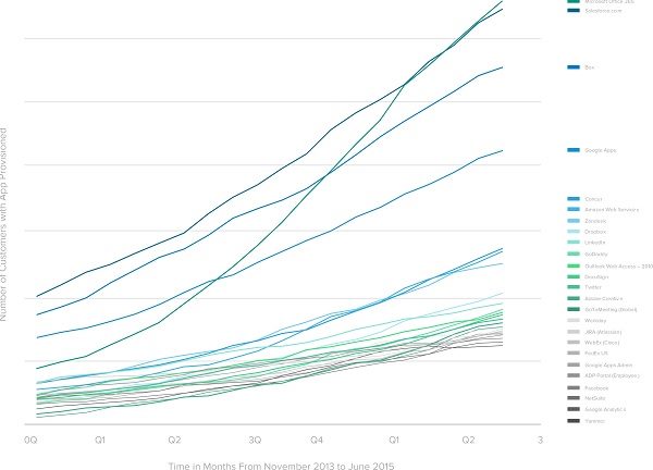 But that wasn’t always the case. Between Nov. 2013 and June 2015 it surpassed not only Salesforce as the most used app in the cloud, but also pushed past Google Apps and Box in a survey of nearly 4000 off-the-shelf business apps.