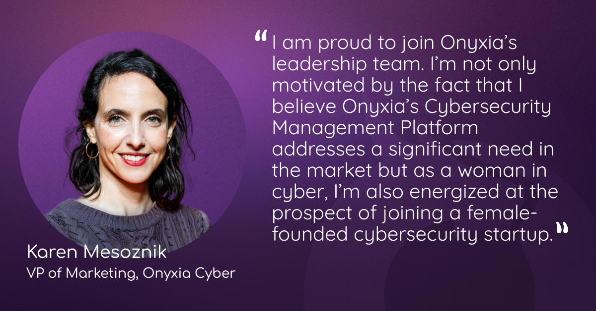 “I am proud to join Onyxia’s leadership team,” Mesoznik said. ”I’m not only motivated by the fact that I believe Onyxia’s Cybersecurity Management Platform addresses a significant need in the market but as a woman in cyber, I’m also energized at the prospect of joining a female-founded cybersecurity startup. I am passionate about seeing more women in tech, and moreover, tech leadership roles.”